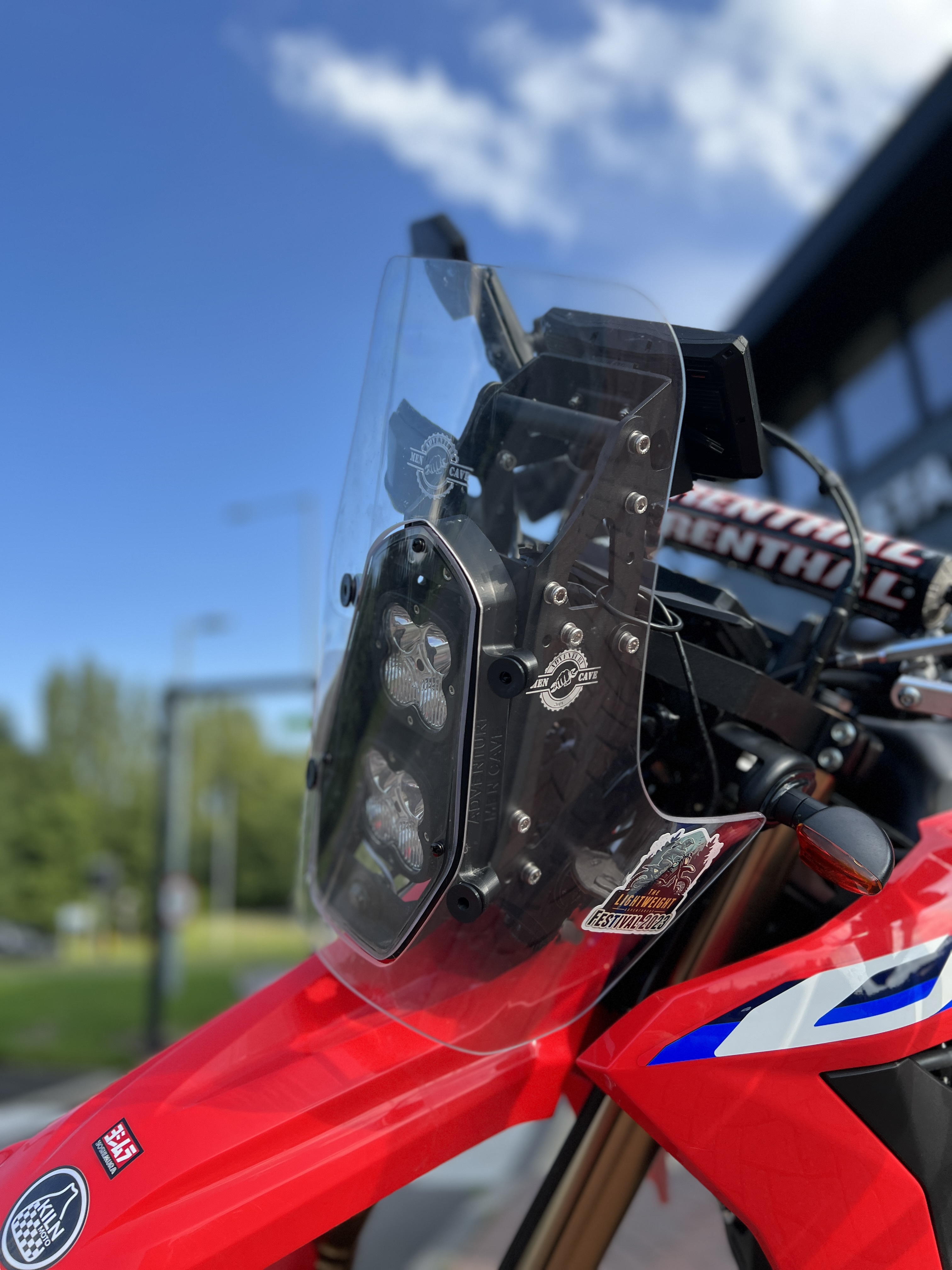 For improved visibility during night rides and enhanced mounting options for accessories, I added the Adventure-Men-Cave ENDUROL8NAV tower, which fits directly onto the triple clamps. It was the perfect addition to the CRF, it looks great but also acts as a robust and functional accessory allows me to install auxiliary lights, GPS systems, and more.