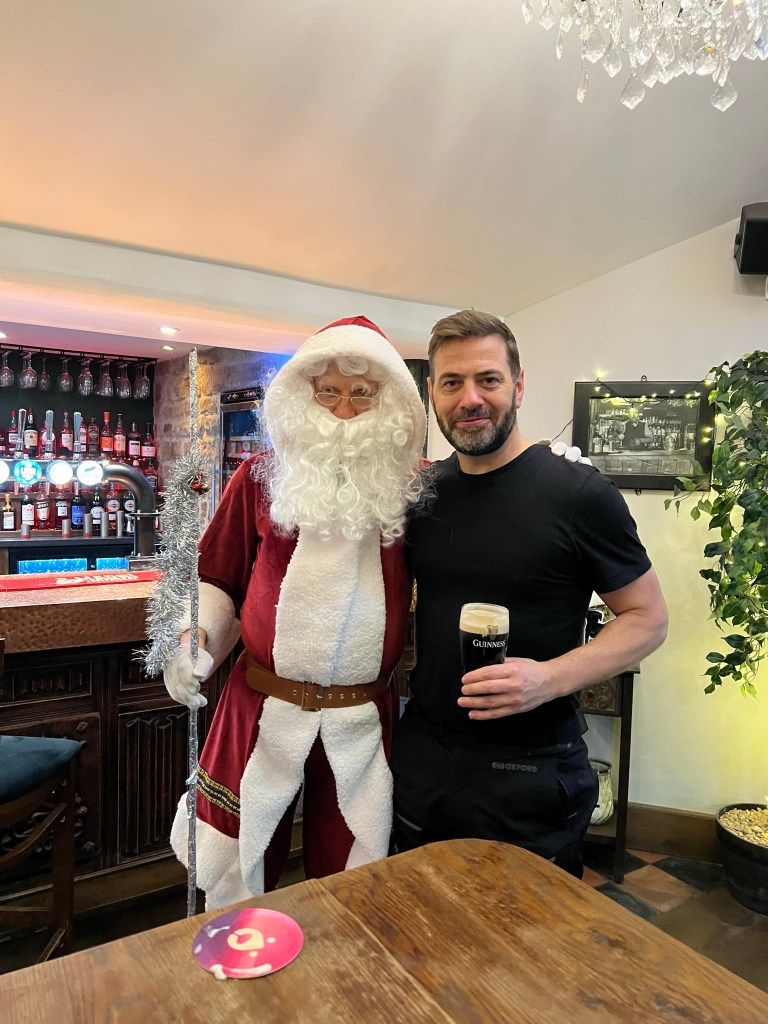 Savouring a hearty meal, I reflected on the day’s adventures, surrounded by the camaraderie of my fellow rider and surprisingly, Santa Claus, who had recently attended a local school event and was also in need of refreshments.