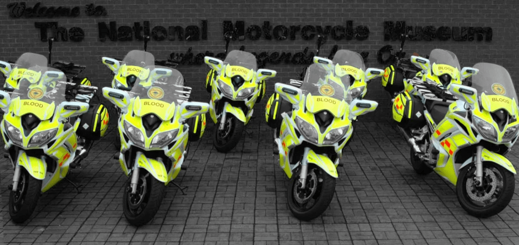 Blood bikers are trained volunteers who transport urgent medical items such as blood, samples, donor breast milk and medical equipment between hospitals and healthcare sites. They operate across the UK, providing a service 24 hours a day, every day of the year, at no cost to the NHS.