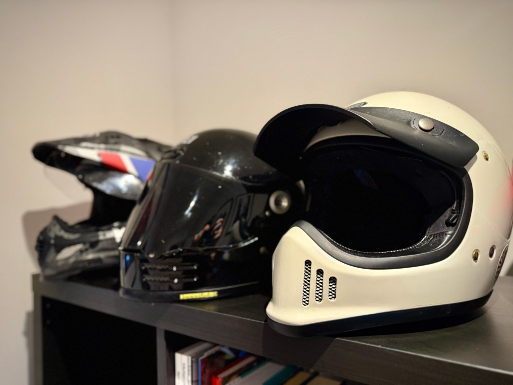 Some of my current lids – Shoei EX-Zero, Shoei Glamster and the Arai Tour X 4