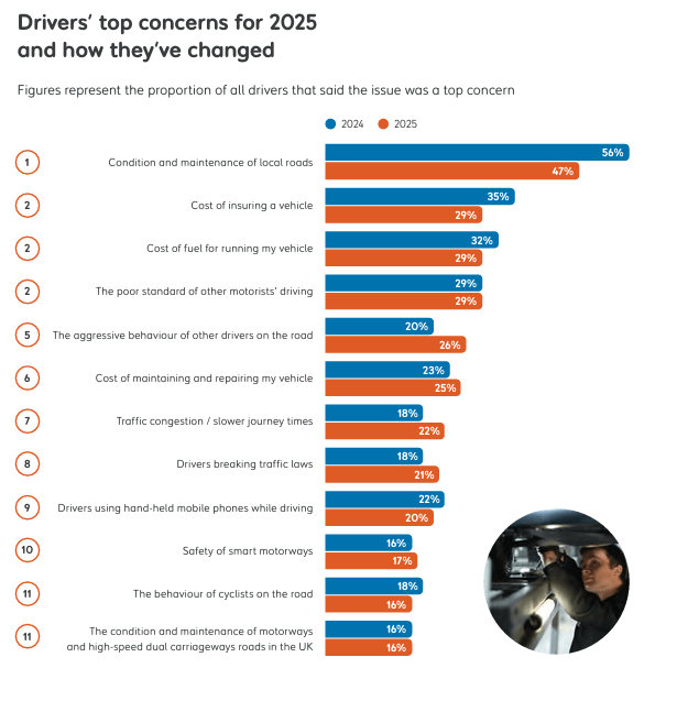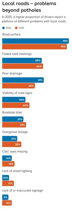 According to the RAC Report on Motoring – The condition and maintenance of local roads is the top concern amongst the drivers that was surveyed and that concern increased from 2024 -2025.