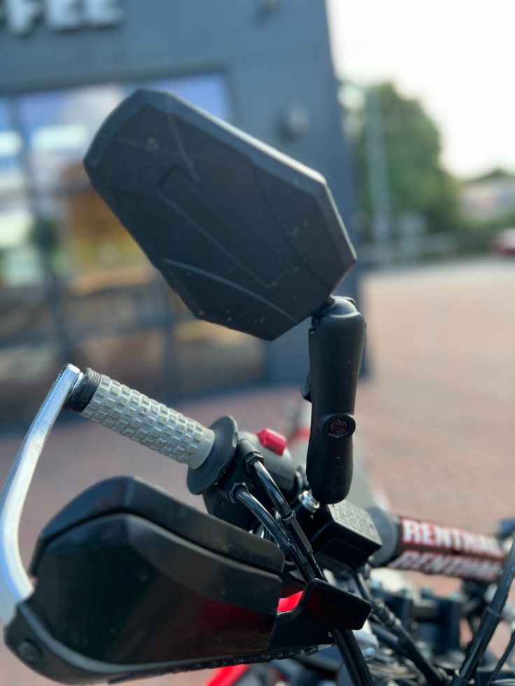 Double-Take mirrors provide a reliable solution for maintaining visibility in rough conditions. Foldable and durable, they offer a clear view of surroundings, ensuring safety and convenience on every ride.